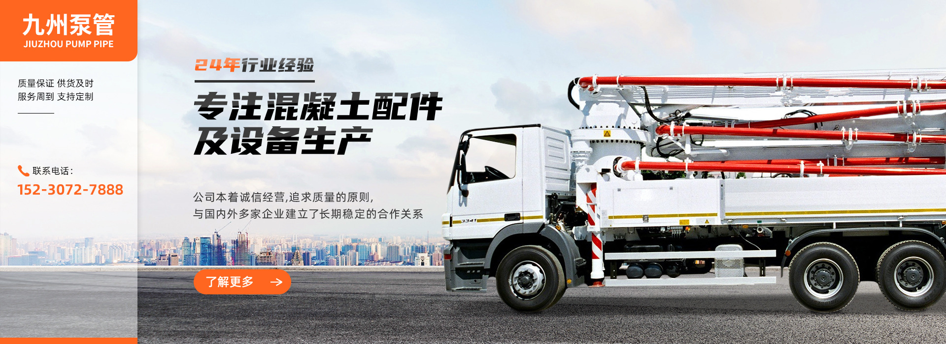 鹽山縣九州泵管制造有限公司是生產混凝土輸送管道的廠家。位于鹽山縣正港工業開發區,北靠京津,南臨齊魯,西接京滬鐵路、東臨渤海灣、天津港、205國道橫穿鹽山縣縣境。便利交通、豐富的地域資源和優越的區位條件使我們占盡了天時、地利、人和之優勢,為我公司的發展奠定的良好的基礎。 我廠是生產混凝土輸送泵、泵車配件專業廠家主營產品有:HBT30、40、50、60、70、80型混凝土輸送泵管道;各種地面管、水平管、直管、彎管、變徑管、橡膠軟管、橡膠密封圈、清洗球、清洗柱、清洗活塞、高中低壓鋼卡及攪拌站的輸送產品等。中聯、三一、大...